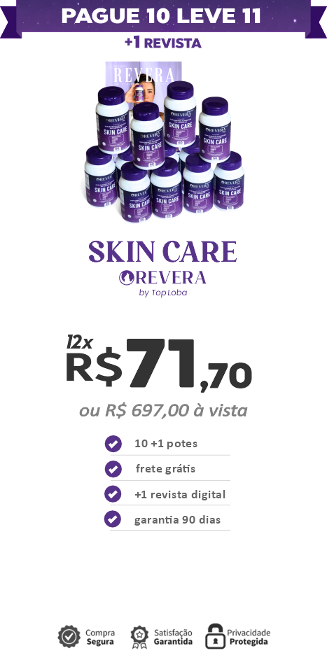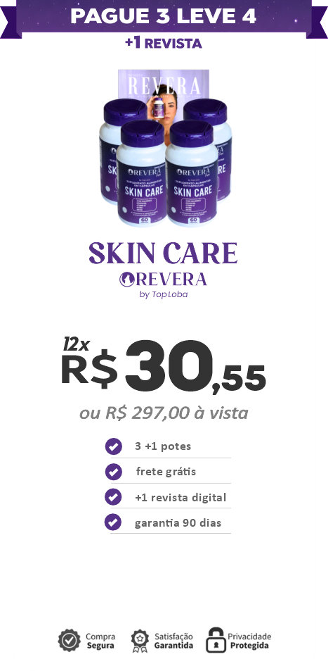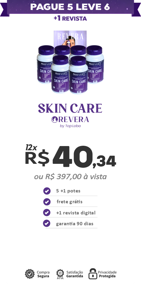 O Revera Caps vai acelerar a Renovação Celular, para que as células velhas da sua pele sejam trocadas por células novinhas em folha! Já imaginou perceber que você está envelhecendo apenas 1 ano a cada 3?
